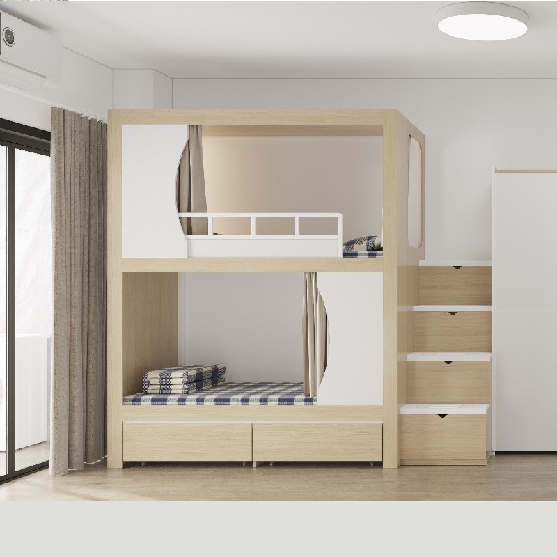 Multi-fonctionnel capsule simple double sous-sol dortoir de l'école lit superposé avec un bureau d'escalier et sous glisser