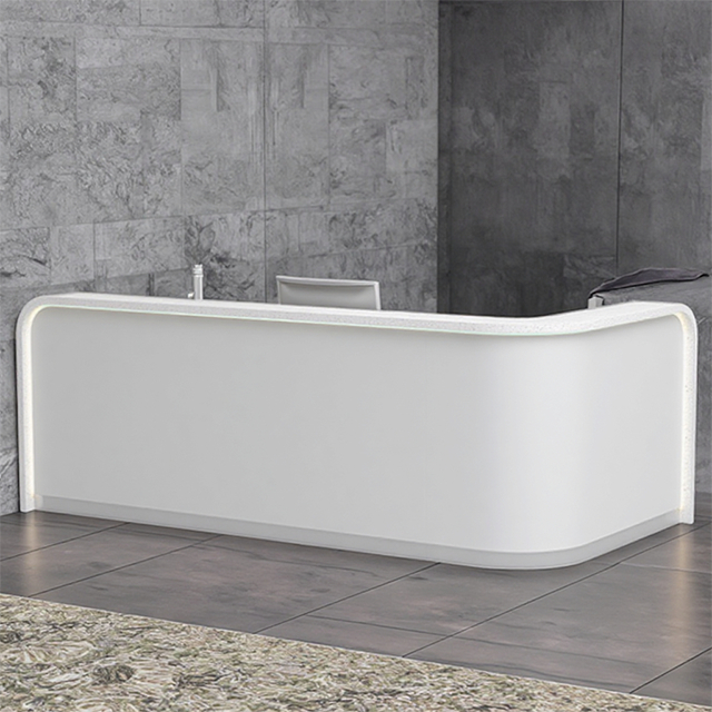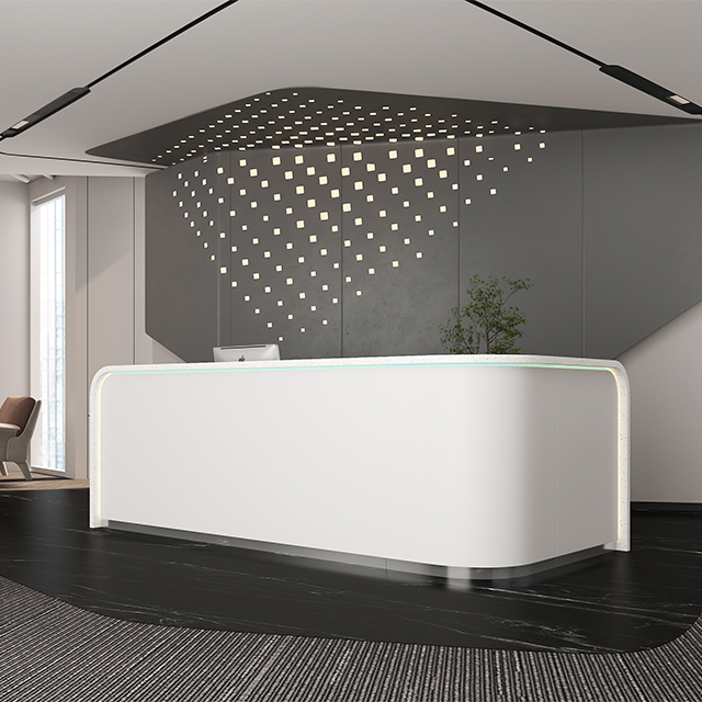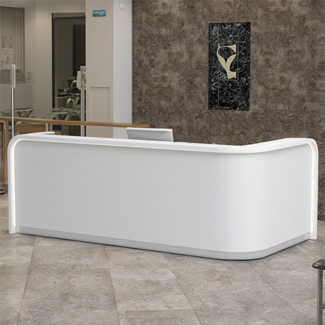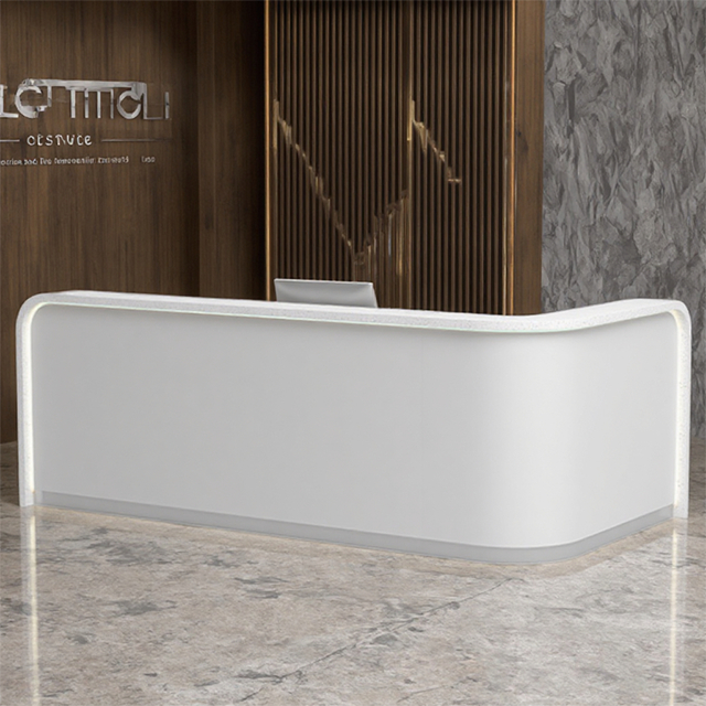 Comptoir de réception en pierre artificielle texturée, comptoir de réception d'hôtel, comptoir de service, simple, moderne et élégant, incurvé