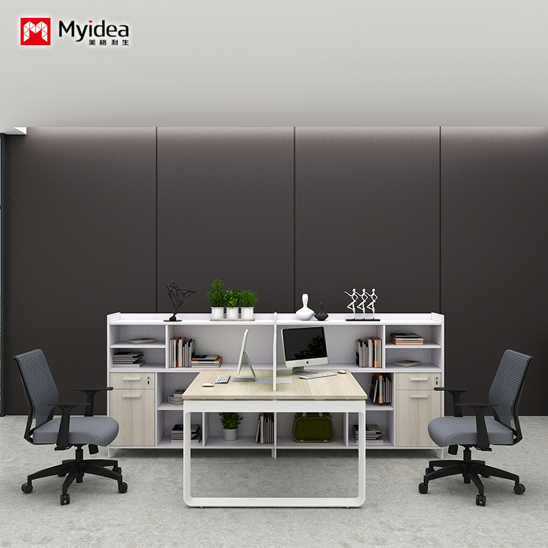 Company Office Screen Style Computer Desk with Two Person Design Sense,desk with file Cabinet for Storage office Desk