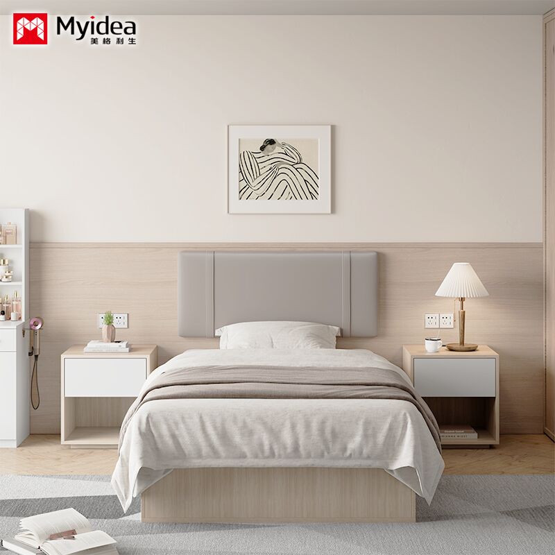 personnalisation Lit d'appartement unique, logement en famille, lit stable avec conception de port de recharge, ensemble doux pour la tête de lit, lit moderne