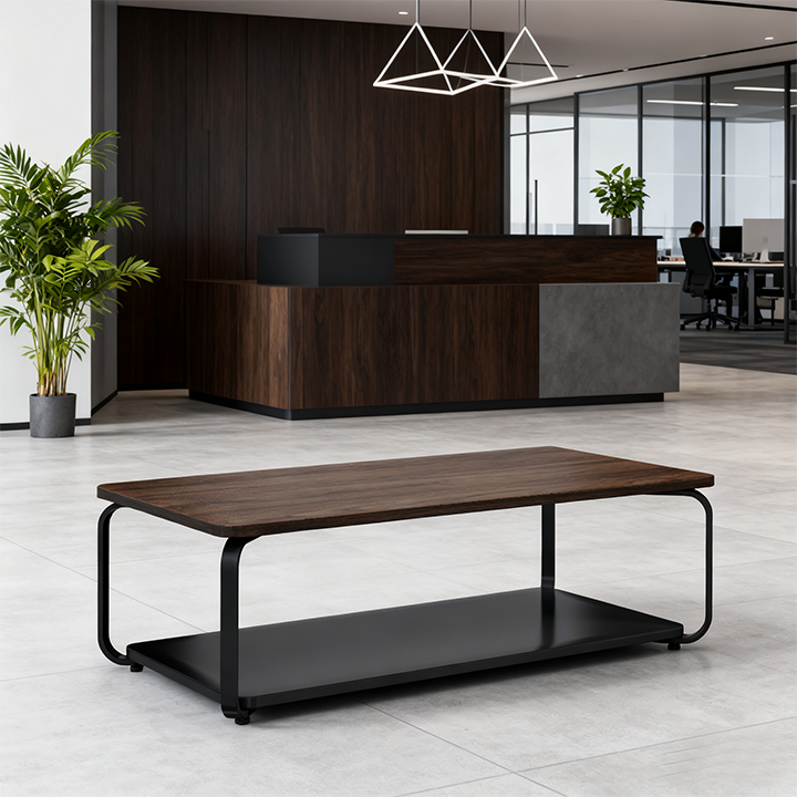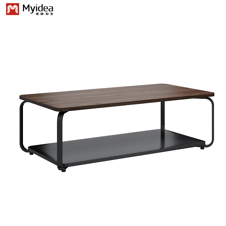 Table basse et table de négociation en bois style simple avec pieds et plaques en acier, mobilier commercial écologique fabriqué en usine